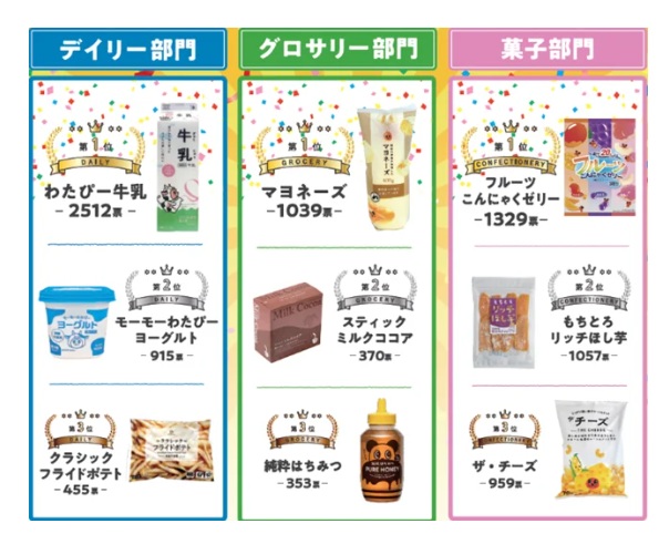 同企画は、「お気に入りの綿半オリジナル商品」をテーマに、2025年秋から約2カ月間、店内掲示のポスターおよびWEBを通じて顧客から投票を募ったもの。投票総数1万3849票の中から、「デイリー」「グロサリー」「菓子」の3部門で特に支持を集めた商品が選出された。