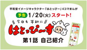 (株)平和堂(滋賀県彦根市、平松正嗣社長)は、平和堂イメージキャラクター「はとっぴー」の認知向上を目指す「はとっぴーだいすき! プロジェクト」として、1月20日(火)から「はとっぴー」の日常を描く平和堂オリジナル 4コマまんが『はとっぴ~す』の配信を開始した。