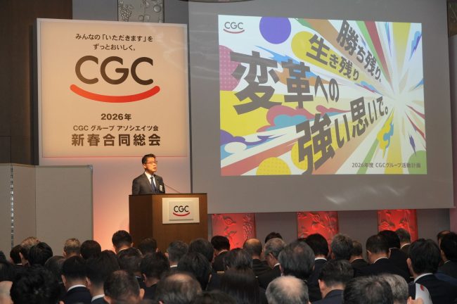 (株)シジシージャパン(東京都新宿区、松本偉社長)は2026年度の活動方針として、CGCグループの商品活動では、プライベートブランド(PB)、ナショナルブランド(NB)ともにウインナー、コーヒー、ペット用品など50カテゴリーの販売を強化する。CGCグループ・アソシエイツ会で松本社長が発表した。