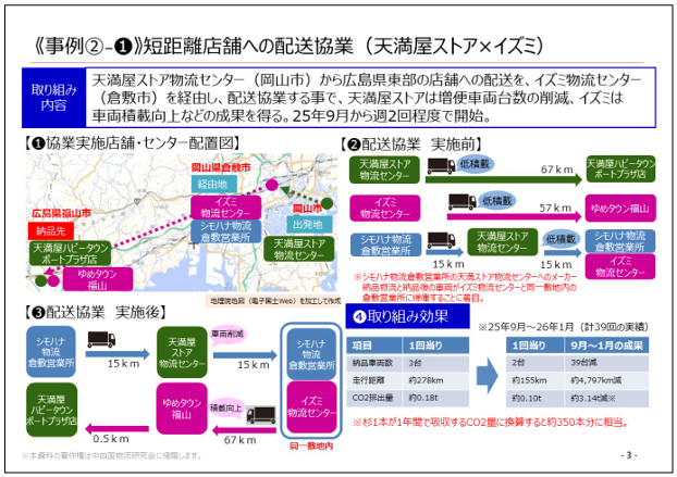 ➁短距離店舗への配送協業(天満屋ストア×イズミ)