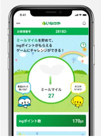 値引き商品の購入翌日に「ミールマイル」が付与され、ホーム画面で確認できる。ゲームで獲得した「ingポイント」も即時ホーム画面で確認でき、翌月5日頃から買物で利用できるようになる。