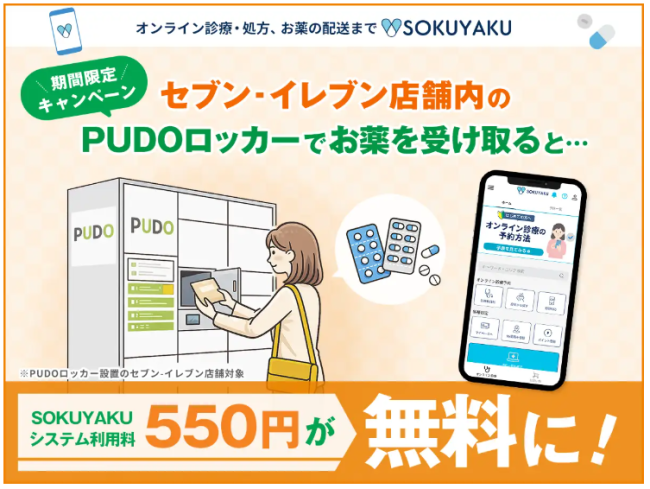 利用者はSOKUYAKUアプリでオンライン診療や服薬指導を受け、処方薬の受け取り方法として「セブン-イレブンPUDOロッカー受け取り」を選択。アプリの到着通知後、指定店舗のロッカーで受け取る仕組みだ。夜間や休日でも受け取りが可能で、外出時間を短縮したい利用者や、薬局に立ち寄る時間が確保しづらい層のニーズに応える。