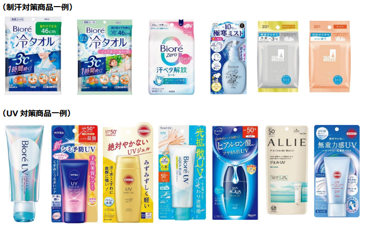さらに外出時の暑さ対策ニーズに対応する関連商品の「まとめ買い」企画を実施する。5月31日までの期間、対象商品の日焼け止め、制汗スプレー・シートを組み合わせ自由で、よりどり「2点で10%OFF」、「3点で15%OFF」で提供する。