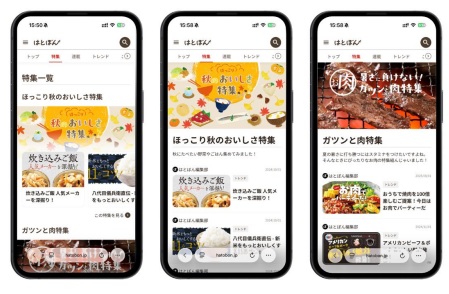 そのほか「特集」機能も搭載。日本は季節により旬の食材が変化し食卓が豊かに変わることから、季節ごとのトレンドを楽しめるよういくつかの記事を季節やテーマでまとめて見やすいようにひとくくりにする。