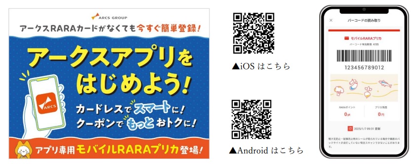 モバイル RARA プリカは、アークスのアプリ上でカードレス(磁気カード発行不要)でプリペイド払いや、RARA ポイントが貯められるサービス。さらにお得な情報やクーポンなども利用できる。※すでにアークスRARAカードを持っている人は、モバイルRARAプリカには入会できない。