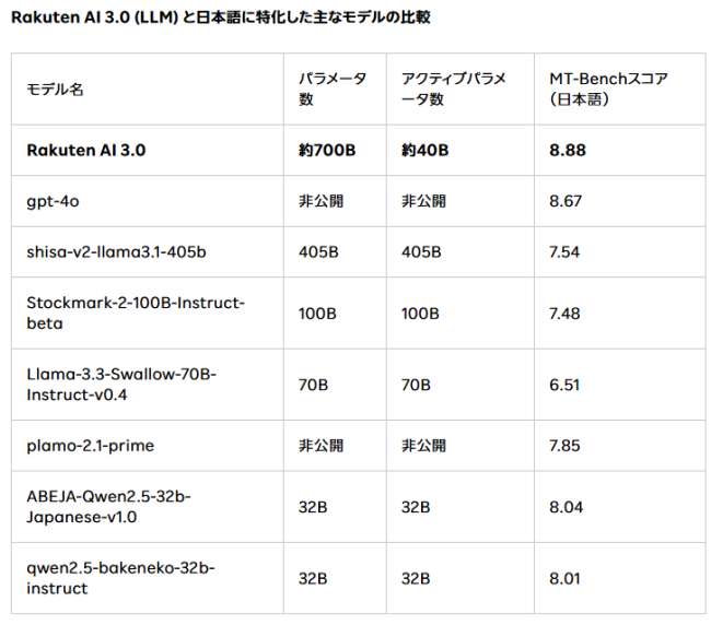 同モデルは、Mixture of Experts(MoE)アーキテクチャを採用した日本語大規模言語モデル(LLM)。日本語に特化したLLMとして、楽天がこれまでに開発したAIモデルや他のLLMの中でも最大規模となる約7000億個のパラメータを持つ。